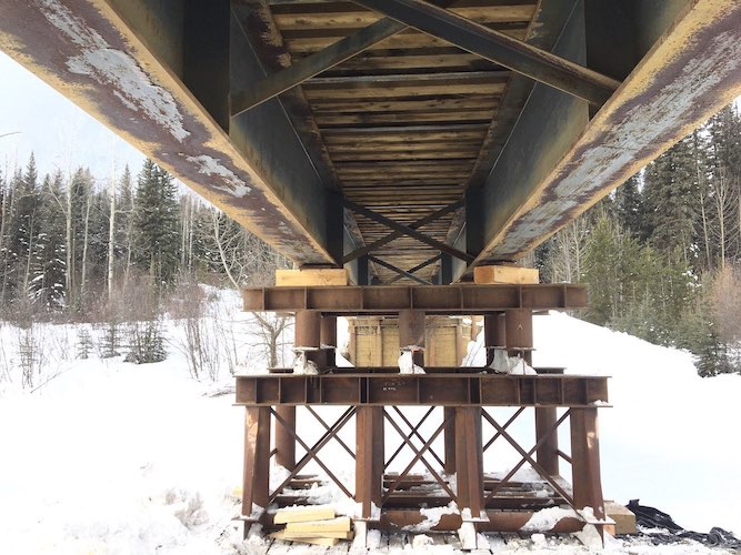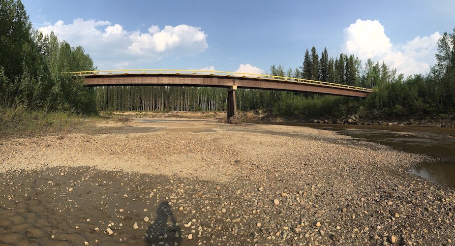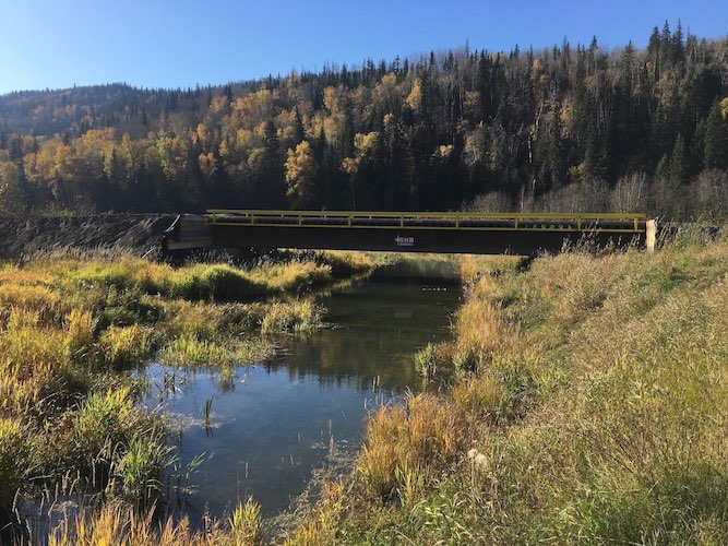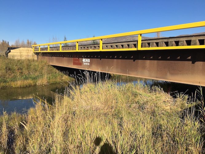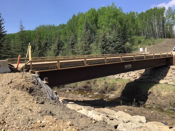 Construction started on a new bridge to be installed crossing Mink Creek near Slave Lake in northern Alberta in December of 2017. Trilogy Crossing Corp. created a plan and proposed bridge lengths and water clearances to develop a structure that was suitable for the new site. The new bridge is a 30.48m (100ft.) twin steel beam with timber modular deck structure, allowing the bridge to arrive in several pieces before final assembly on-site. Four piles were driven to refusal with a cap beam on each abutment and the bridge was set according to the plan prepared by Trilogy Crossing Corp. A post-construction assessment was completed once the bridge was in place and all methods were verified and documented for future reference.