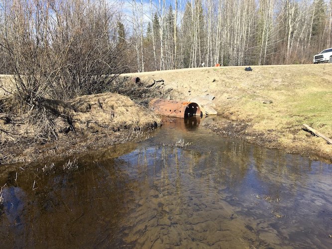 During the summer of 2018, a client required the replacement of an 18.288m (60ft) bridge in poor condition. The bridge ballast walls were in very poor condition, letting fill through that would start to affect the stream quality if left unattended. A new 30.48m (100ft) bridge was installed in the same location to have adequate rock armoured embankment slopes to the creek and also to maintain the existing road alignment. The bridge was designed to withstand heavy loads (L100) that are required to access the area on the other side of the creek. Upon final completion, an as-built survey was completed to verify all components were installed according to the plans and all documentation was prepared to state the changes and final conditions of the structure.