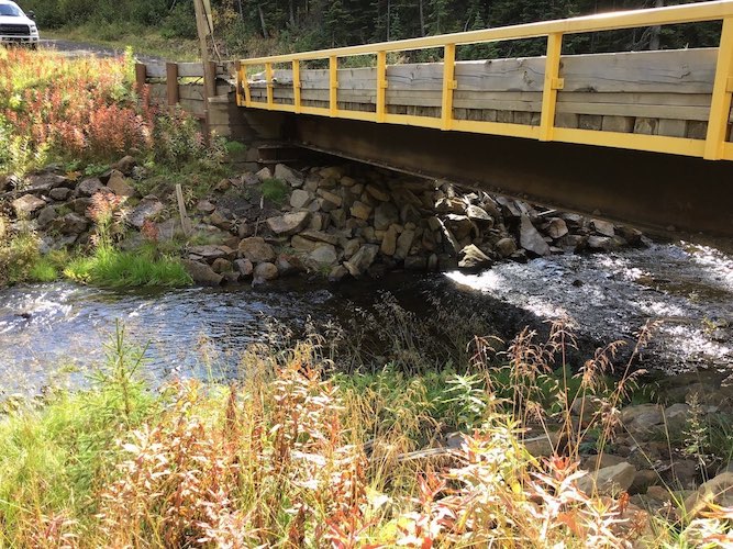 During the summer of 2018, a client required the replacement of an 18.288m (60ft) bridge in poor condition. The bridge ballast walls were in very poor condition, letting fill through that would start to affect the stream quality if left unattended. A new 30.48m (100ft) bridge was installed in the same location to have adequate rock armoured embankment slopes to the creek and also to maintain the existing road alignment. The bridge was designed to withstand heavy loads (L100) that are required to access the area on the other side of the creek. Upon final completion, an as-built survey was completed to verify all components were installed according to the plans and all documentation was prepared to state the changes and final conditions of the structure.