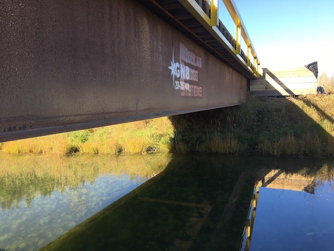 Construction started on a new bridge to be installed crossing Mink Creek near Slave Lake in northern Alberta in December of 2017. Trilogy Crossing Corp. created a plan and proposed bridge lengths and water clearances to develop a structure that was suitable for the new site. The new bridge is a 30.48m (100ft.) twin steel beam with timber modular deck structure, allowing the bridge to arrive in several pieces before final assembly on-site. Four piles were driven to refusal with a cap beam on each abutment and the bridge was set according to the plan prepared by Trilogy Crossing Corp. A post-construction assessment was completed once the bridge was in place and all methods were verified and documented for future reference.